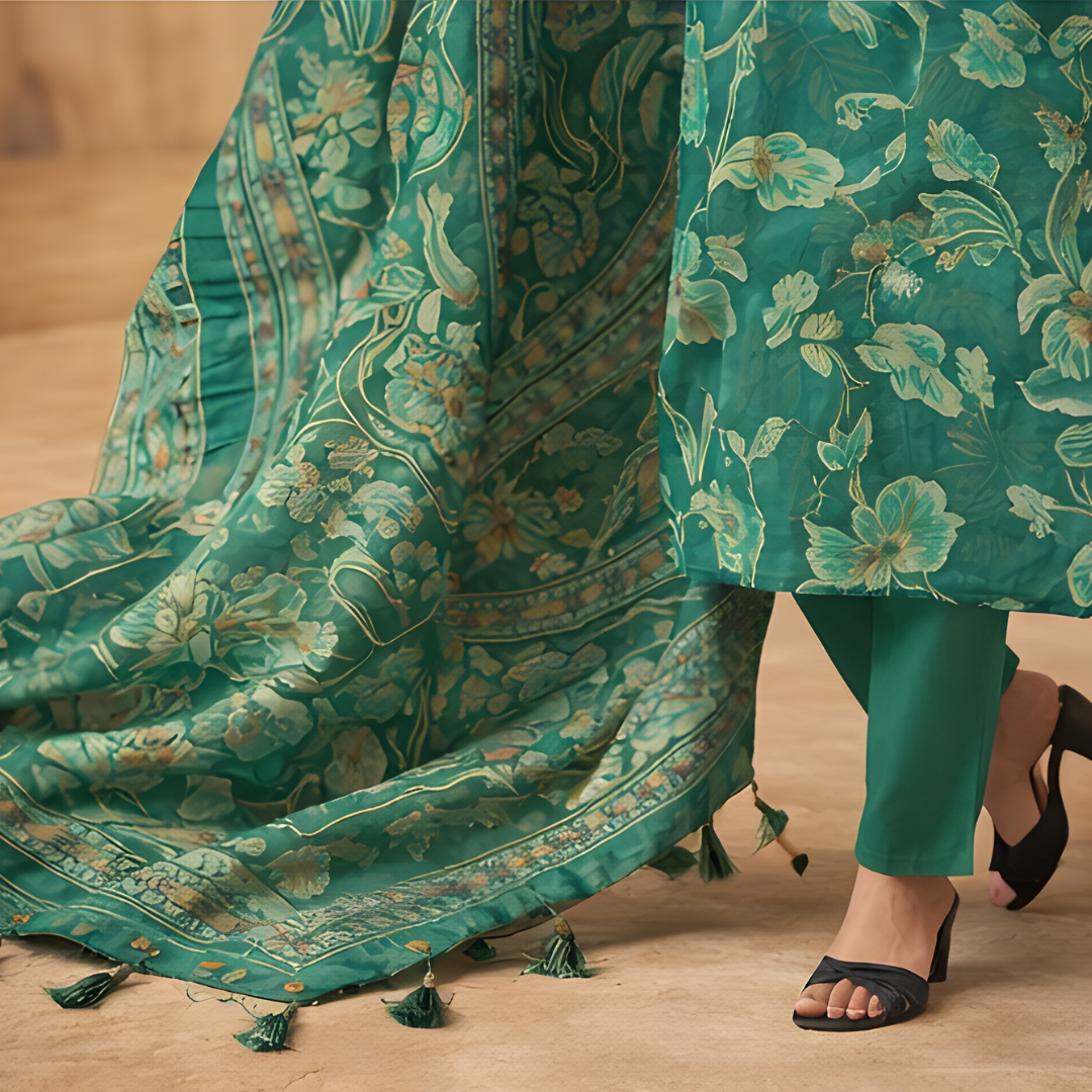 Taniksh 4007 Floral Print Kurta, Trouser & Dupatta Set – Green