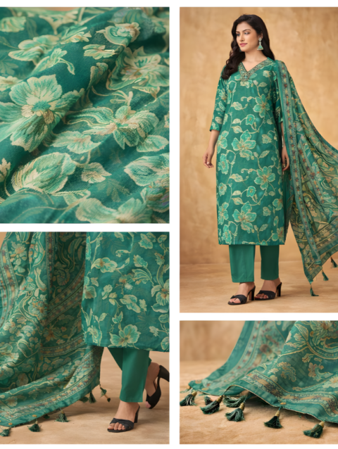 Taniksh 4007 Floral Print Kurta, Trouser & Dupatta Set – Green